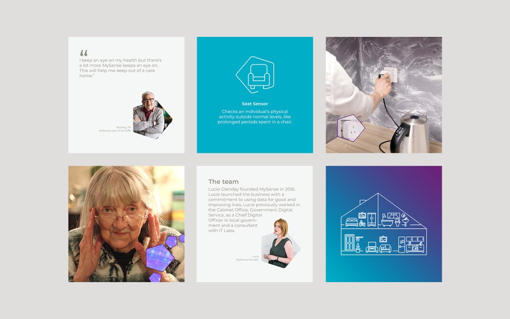 On this logo we changed the hexagon shape to a pentagon, as a reference to the user senses, the ‘My’ is placed into the pentagon to highlight the fact the user is the most important. The pentagon edges are rounded to avoid any negative association. ‘Sense’ is written in a neutral colour to create a balance with the pentagon, and the used font is a rounded one to impart a cocooning feeling.
